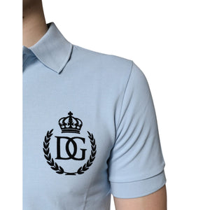 Dolce & Gabbana Sky Blue Cotton Crown Collared Polo T-shirt