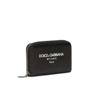 black calf leather silver-tone hardware logo print to the front all-around zip fastening internal card slots Leather continental wallet Size and Fit - Width 4,92 in / 12,5 cm