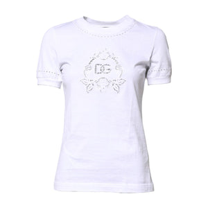 Dolce & Gabbana White Cotton Floral Logo Crew Neck T-shirt