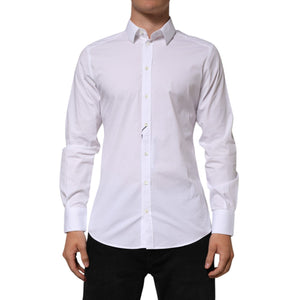 Dolce & Gabbana White Cotton GOLD Long Sleeves Formal Men Shirt