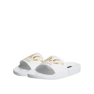 Dolce & Gabbana White Leather Slides Sandals Beachwear Shoes