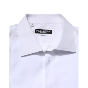Dolce & Gabbana White Silk Bib Poplin GOLD Men Formal Shirt