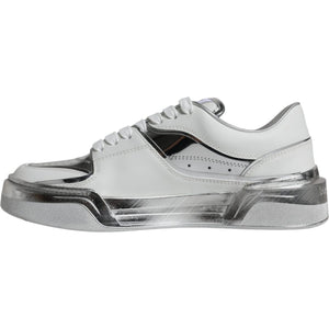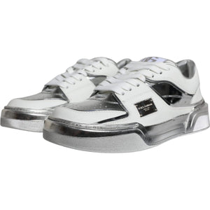 Dolce & Gabbana White Silver Leather Low Top Sneakers Shoes