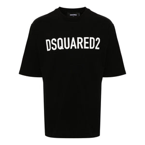 black cotton soft jersey round neck logo print to the front short sleeves straight hem Logo cotton t-shirt Size and Fit - This piece fits true to size. We recommend you get your regular size. Model is 1,84m / 6ft 1in wearing size M