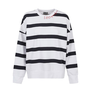 Crew-neck sweatshirt with long sleeves, striped, white and blue, EA7 logo in red, straight hem. Cotton crewneck sweatshirt Size and Fit - This piece fits true to size. We recommend you get your regular size. Model is 1,75m / 5ft 8in wearing size S