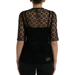 Dolce & Gabbana Black Floral Lace Short Sleeves Blouse Top