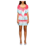Stand out from the crowd in this playful yet chic Elisabetta Franchi dress, where Italian elegance meets contemporary style. Drenched in a delightful pink hue complemented by whimsical light blue fringes, this number boasts a flattering, slightly elasticized fit to accentuate your silhouette. Crafted with precision in Italy, the blend of polyester and elastane promises both comfort and class.
