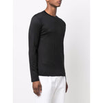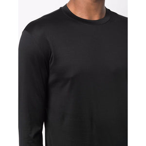 Black crew neck long sleeves straight hem This item contains at least 50% materials which are certified or widely recognised as having a lower environmental impact through production and/or manufacturing processes that reduce water consumption and the use of harmful chemicals, or re-use by-products of the production process. Learn more about what makes a product Conscious on our Conscious Criteria page. Logo t-shirt Size and Fit - This piece fits true to size. We recommend you get your regular size. Model is 1,84m / 6ft 1in wearing size M