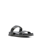 black touch-strap fastening flat rubber sole debossed logo to the front braided edge Leather sandals Size and Fit - Heel 1,2 in / 3 cm