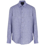 blue linen/flax mélange effect straight-point collar long sleeves buttoned cuffs front button fastening curved hem Linen shirt Size and Fit - This piece fits true to size. We recommend you get your regular size. Model is 1,84m / 6ft 1in wearing size M