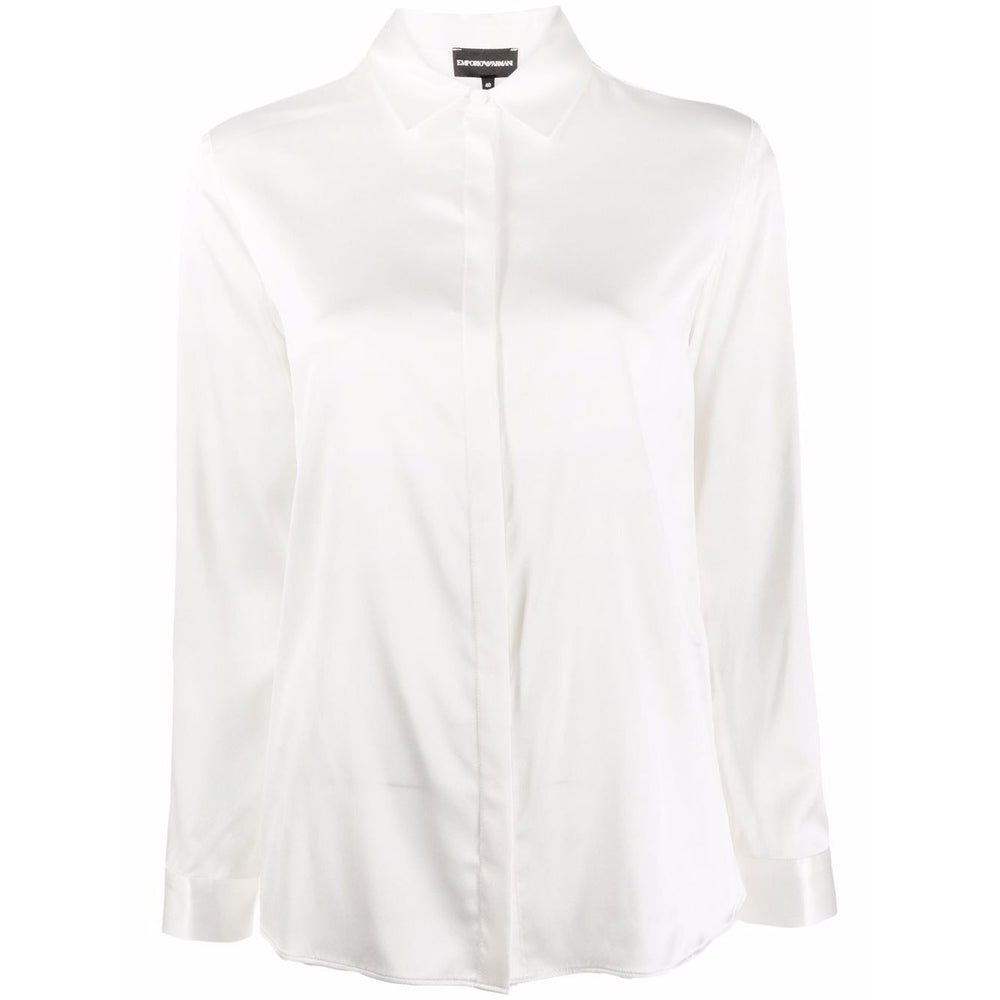 White silk blend long-sleeve silk shirt from EMPORIO ARMANI featuring classic collar, concealed front button fastening, long sleeves, buttoned cuffs and straight hem. Silk shirt Size and Fit - This piece fits true to size. We recommend you get your regular size. Model is 1,75m / 5ft 8in wearing size 40 (IT)