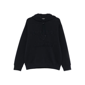 midnight blue drawstring hood ribbed cuffs and hem drop shoulder Logo cotton hoodie Size and Fit - This piece fits true to size. We recommend you get your regular size. Model is 1,84m / 6ft 1in wearing size M