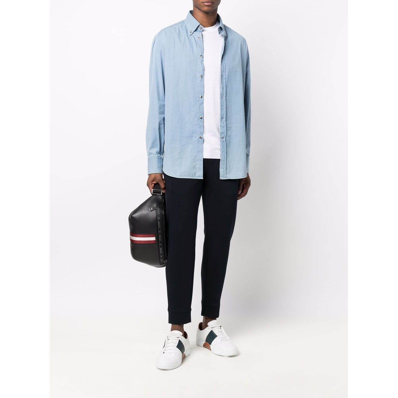 white round neck short sleeves logo patch to the front straight hem Logo cotton blend t-shirt