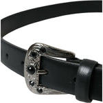 Dolce & Gabbana Black Embellished Leather Engraved Buckle Belt