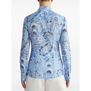 blue/white/black cotton-silk blend paisley print spread collar front button fastening long sleeves buttoned cuffs straight hem Cotton and silk blend shirt Size and Fit - This piece fits true to size. We recommend you get your regular size. Model is 1,75m / 5ft 8in wearing size 40 (IT)