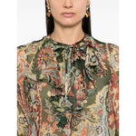multicolour silk crepon ruffle collar concealed front button fastening all-over floral print long sleeves ruffle cuffs curved hem Printed silk shirt Size and Fit - This piece fits true to size. We recommend you get your regular size. Model is 1,75m / 5ft 8in wearing size 40 (IT)