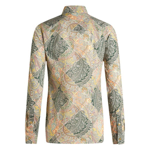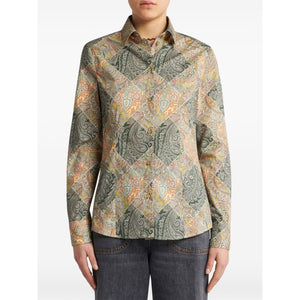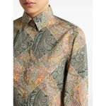 green/beige cotton poplin texture patchwork pattern print paisley print pointed flat collar front button fastening long sleeves buttoned cuffs straight hem Printed cotton shirt Size and Fit - This piece fits true to size. We recommend you get your regular size. Model is 1,75m / 5ft 8in wearing size 40 (IT)