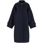 single-breast wool coat from Ferragamo featuring navy blue, wool, high neck, button fastening, long sleeves, calf-length and straight hem. Oversized wool single-breasted coat Size and Fit - This piece fits true to size. We recommend you get your regular size. Model is 1,75m / 5ft 8in wearing size 40 (IT)
