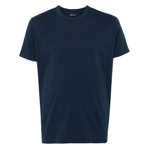 navy blue cotton jersey texture round neck short sleeves straight hem Cotton t-shirt Size and Fit - This piece fits true to size. We recommend you get your regular size. Model is 1,84m / 6ft 1in wearing size M