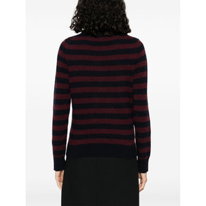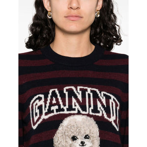 midnight blue crew neck long sleeves ribbed trim horizontal stripe pattern Poodle wool crewneck sweater
