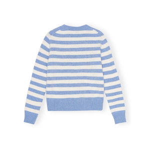 blue pinstripe pattern ribbed band collar long sleeves embroidered logo to the front ribbed cuffs and hem Embroidered striped wool sweater Size and Fit - This piece fits true to size. We recommend you get your regular size. Model is 1,75m / 5ft 8in wearing size S