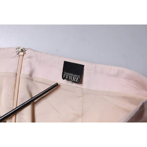 GF Ferre Beige Cotton Stretch Mid Waist Pencil Cut Skirt
