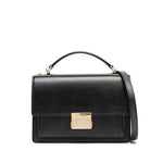 black push-lock fastening foldover top single top handle adjustable detachable shoulder strap Venezia leather handbag Size and Fit - Width 8,66 in / 22 cm Height 5,91 in / 15 cm Depth 3,54 in / 9 cm Handle 2,36 in / 6 cm