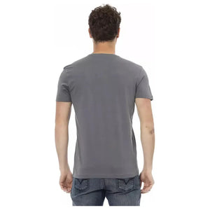 Elevate your casual wardrobe with the Trussardi Action short-sleeve T-shirt, a seamless blend of comfort and style. Crafted from a premium cotton and viscose blend, this tee boasts a soft touch that drapes smoothly against the skin. Step out in its sleek gray hue, featuring a distinct front print that captures attention. Perfect for adding a bold twist to your daily ensemble. This piece not only embodies the trendy spirit but also the storied heritage of Trussardi.