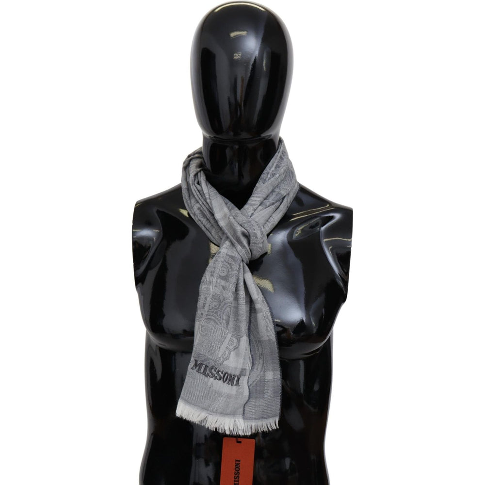 Missoni Gray Floral Wool Unisex Neck Wrap Fringes Scarf