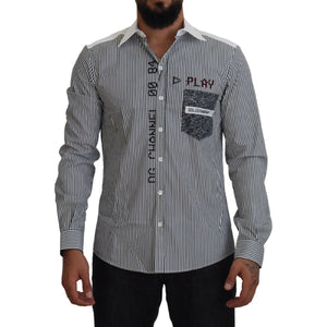 Dolce & Gabbana Gray White Striped Slim Fit Shirt