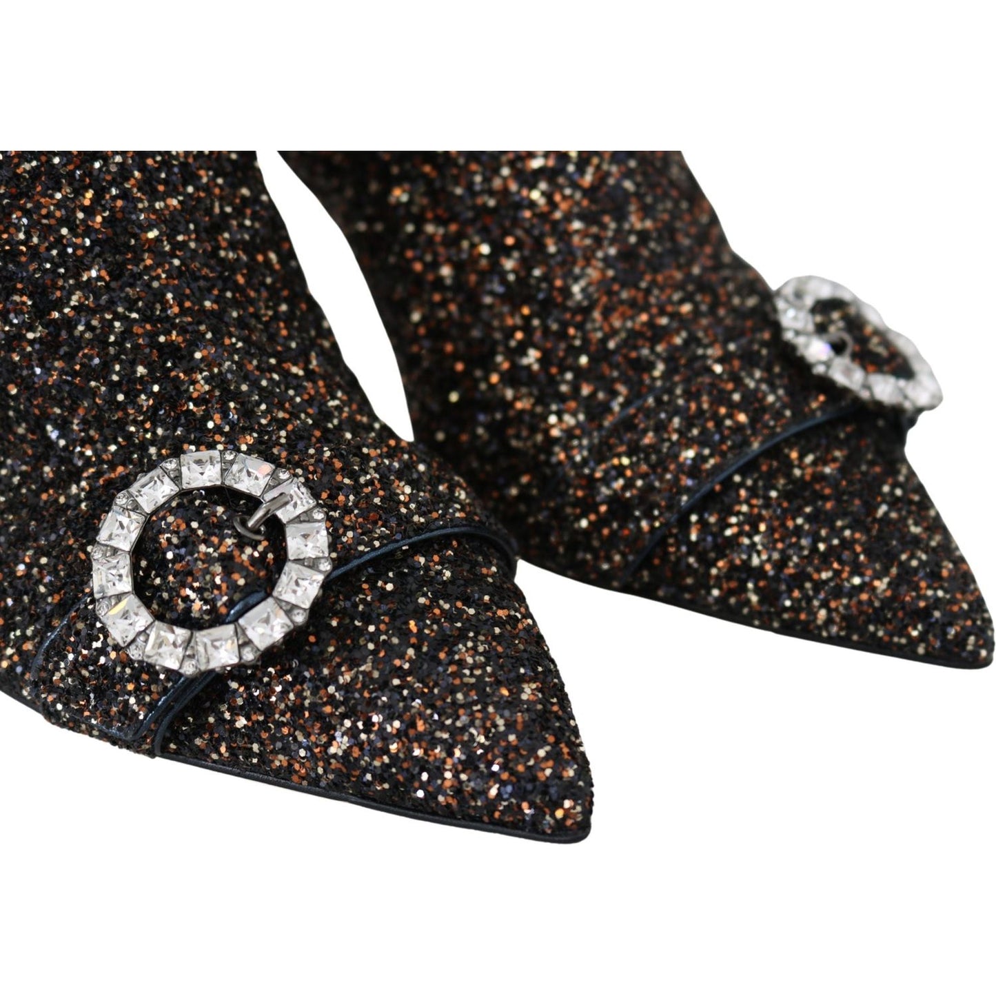 Step into luxury with these exquisite Jimmy Choo ‘Hanover 65’ heeled boots. Perfect for elevating any ensemble, they come brand new with tags, a protective dust bag, and the original shoe box. These boots are crafted with a blend of fabric and glitter leather, featuring a sharp pointed toe and secure zipper closure for a sleek and stylish silhouette. The amethyst mix color adds a touch of unique glamour to your stride, with a comfortable 6.5 cm heel to carry you with grace.