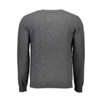 long-sleeved sweater, "v" neckline, contrasting details, logo