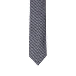 Jil Sander Regimental Silk 7 cm Tie. Light grey background with white stripes.