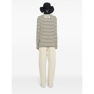 stripe-print cotton T-shirt from JIL SANDER featuring off-white, black, cotton, fine ribbed, horizontal stripe pattern, crew neck, long sleeves, logo patch to the rear and straight hem. Striped cotton t-shirt Size and Fit - This piece fits true to size. We recommend you get your regular size. Model is 1,75m / 5ft 8in wearing size S