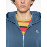 cerulean blue front zip fastening classic hood two front pouch pockets embroidered logo at the sleeve Pop Crest cotton hoodie Size and Fit - This piece fits true to size. We recommend you get your regular size. Model is 1,84m / 6ft 1in wearing size M