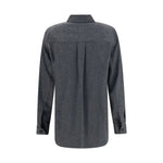 The Auryn Shirt by Khaite combines clean lines with refined materials for effortless elegance. Crafted from dark grey melange wool, it features a front button closure that enhances its understated sophistication. A versatile piece, ideal for elevating both casual and refined outfits.