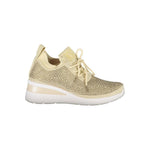 Elevate your streetwear game with Laura Biagiotti’s latest sneaker sensation—a dazzling ensemble of style and comfort. These beige beauties boast contemporary contrasting details, shimmering rhinestone embellishments, and intricate embroidery that catches the eye. Crafted for the fashion-forward, the sneakers feature a removable insole and a subtle yet chic 4 cm heel, perfect for strutting the urban runway with ease. Emblazoned with the iconic Laura Biagiotti logo, these kicks are set to become the coveted staple in your wardrobe.