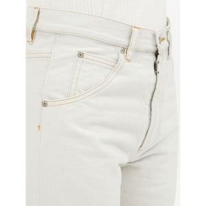 high-waisted straight-leg jeans from Maison Margiela featuring white, cotton, denim, high-waisted, straight leg, belt loops, front button and zip fastening, classic five pockets and straight leg. Skinny denim cotton jeans Size and Fit - This piece fits true to size. We recommend you get your regular size. Model is 1,75m / 5ft 8in wearing size 27 (WAIST CM)