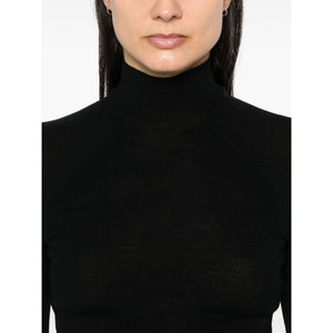 black merino wool blend roll neck short raglan sleeves straight hem Wool and silk blend high-neck sweater Size and Fit - This piece fits true to size. We recommend you get your regular size. Model is 1,75m / 5ft 8in wearing size 1 (NUM)