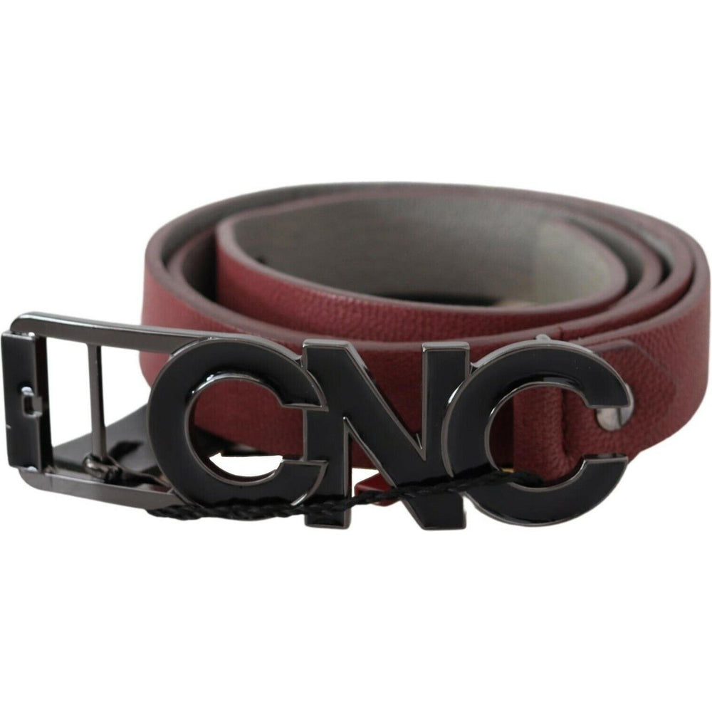Costume National Maroon Skinny Leather Logo Fashion Belt