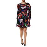 MSGM Dress Black Multicolor Floral Ruffle Long Sleeve Mini Dress