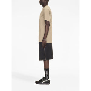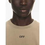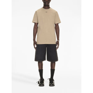 logo-embroidered cotton T-shirt from OFF-WHITE featuring sand beige, cotton, embroidered logo at the chest, crew neck, short sleeves and straight hem. Logo cotton t-shirt Size and Fit - This piece fits true to size. We recommend you get your regular size. Model is 1,84m / 6ft 1in wearing size M