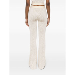 light beige, gold-tone knitted construction metallic threading monogram jacquard striped elasticated logo waistband two front welt pockets flared unlined pull-on style Monogram jacquard knit trousers Size and Fit - This piece fits true to size. We recommend you get your regular size. Model is 1,75m / 5ft 8in wearing size S
