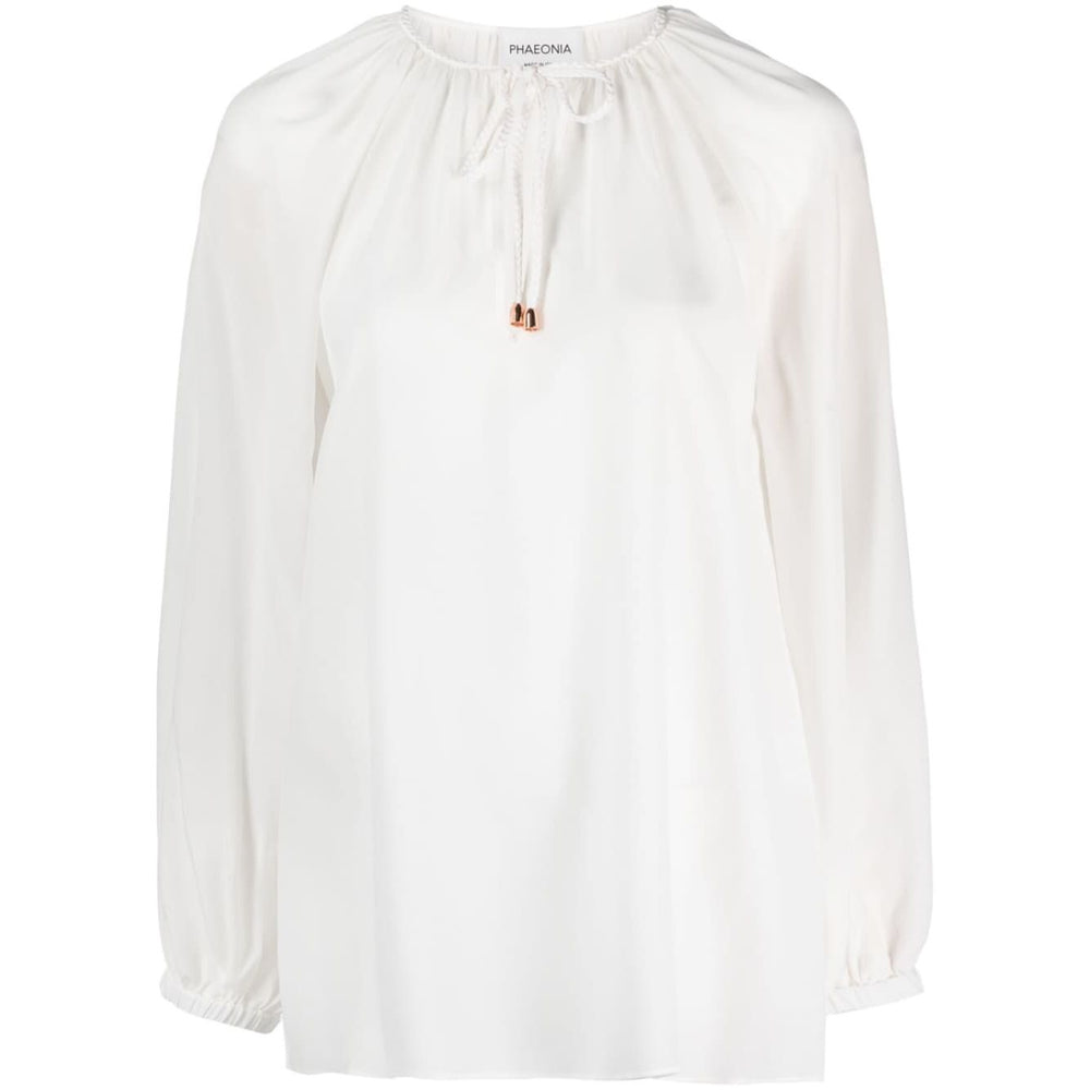 self-tie silk blouse from phaeonia featuring white, silk, self-tie fastening, keyhole neck, long raglan sleeves and elasticated cuffs. Anita long sleeves blouse Size and Fit - This piece fits true to size. We recommend you get your regular size. Model is 1,75m / 5ft 8in wearing size 40 (IT)