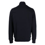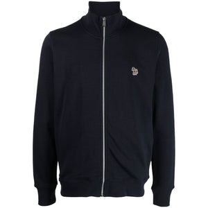 high-neck zip-up sweatshirt from PS Paul Smith featuring navy blue, cotton, signature Zebra motif, high neck, front zip fastening, long sleeves, elasticated cuffs and elasticated hem. Zebra logo cotton sweatshirt