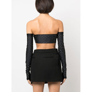 studded off-shoulder top from THE ANDAMANE featuring black, stud embellishment, off-shoulder, long sleeves and cropped. Lexi Crystal crop top Size and Fit - This piece fits true to size. We recommend you get your regular size. Model is 1,75m / 5ft 8in wearing size S