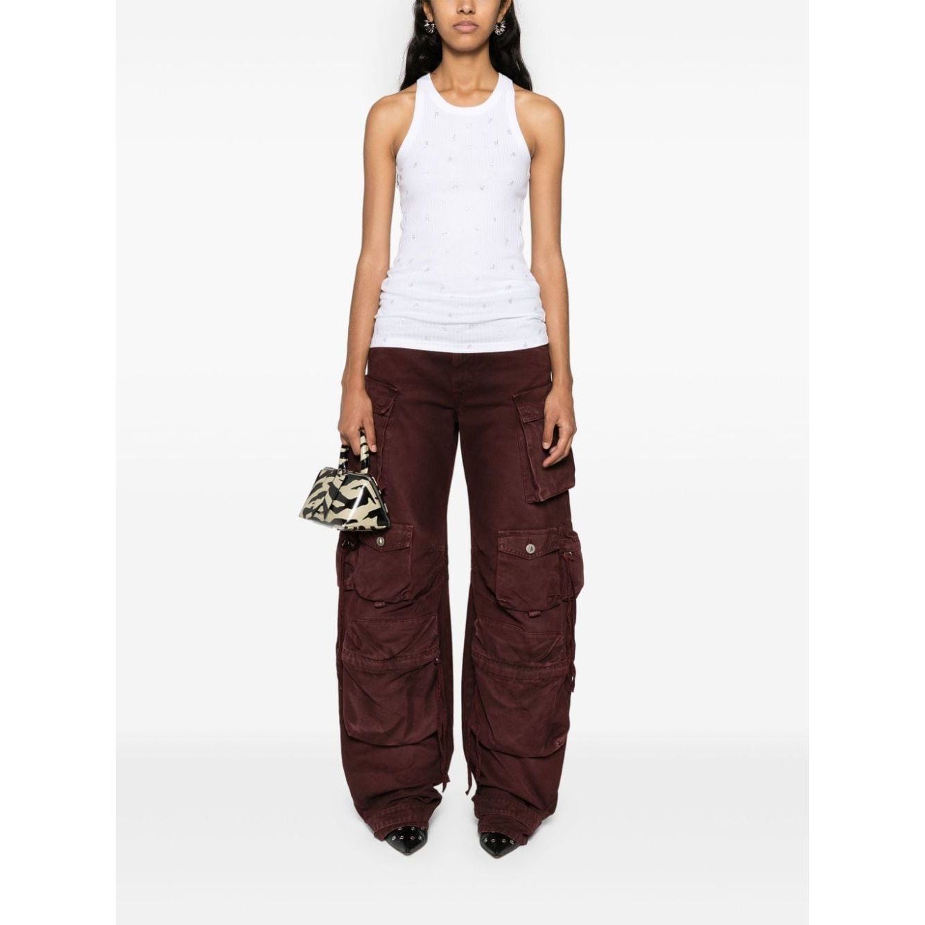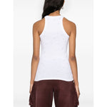 white cotton ribbed detailing all-over rhinestone logo-lettering round neck sleeveless straight hem Allover logo cotton tank top Size and Fit - This piece fits true to size. We recommend you get your regular size. Model is 1,75m / 5ft 8in wearing size 40 (IT)