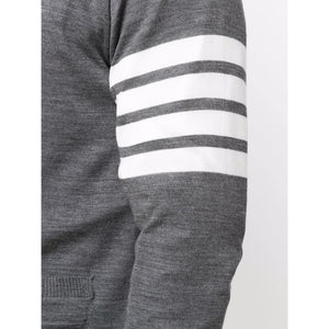 grey merino signature 4-Bar stripe V-neck front button fastening long sleeves buttoned cuffs 4Bar wool cardigan Size and Fit - This piece fits true to size. We recommend you get your regular size. Model is 1,84m / 6ft 1in wearing size 2 (NUM)