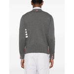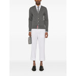 medium grey cotton fine knit signature 4-Bar stripe signature grosgrain loop tab signature grosgrain side tabs ribbed trim V-neck front button fastening long sleeves buttoned cuffs two side patch pockets straight hem 4Bar cotton cardigan Size and Fit - This piece fits true to size. We recommend you get your regular size. Model is 1,84m / 6ft 1in wearing size 2 (NUM)
