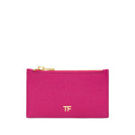 Tom Ford card holder in fuchsia leather. Accessory with golden zip closure, metal “TF” logo applied on the front and card slots.